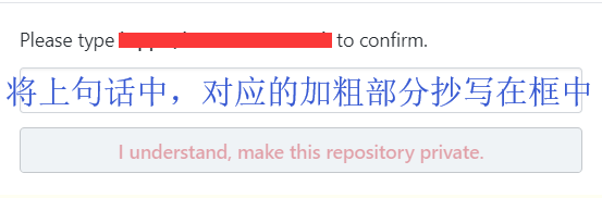 公开库转私有按钮上的文字: I understand, make this repository private.