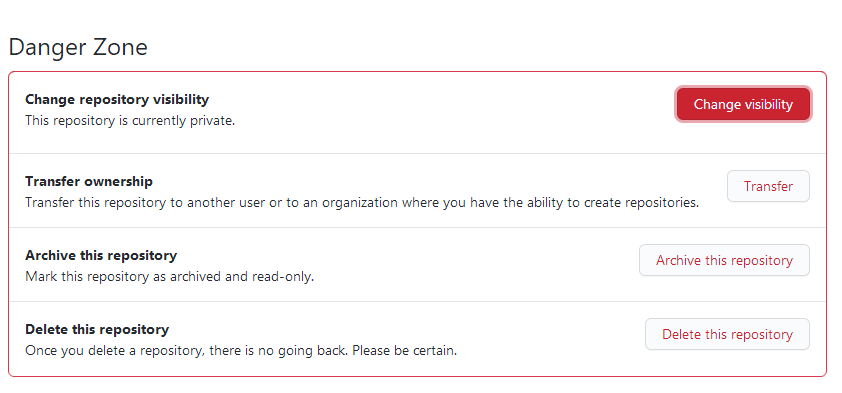 私有库转公开库按钮上的文字: I understand, change repository visibility.