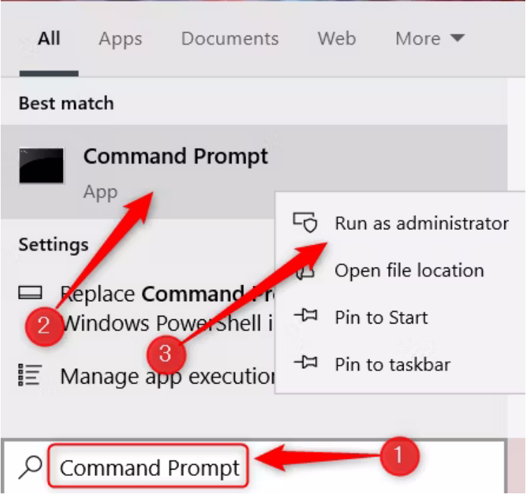 1)首先,通过在 Windows 搜索栏中搜索“命令提示符”,右键单击搜索结果中的“命令提示符”,然后单击上下文菜单中的“以管理员身份运行”,以管理员身份打开命令提示符。