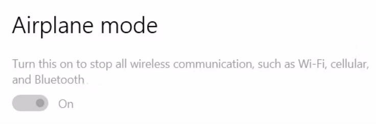 重新启动电脑后,您仍会在“通知”菜单和“设置”应用中看到“飞行模式”选项,但您将无法将其中任何一个切换到“打开”位置。