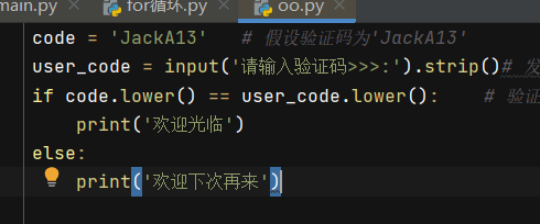 if code.lower() == user_code.lower(): # 验证码大小写和用户输入一致