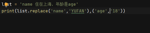 eg : print('{姓名}住在上海浦东,年龄是{年龄}'.format(name='于帆','年龄'=22))