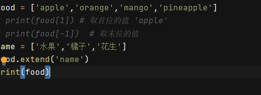 print(k[0:4]) # 在'k' list中取出前三位元素