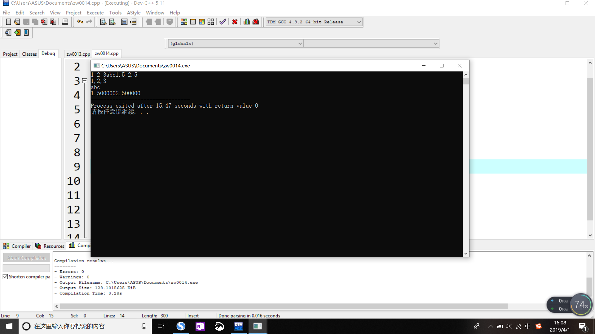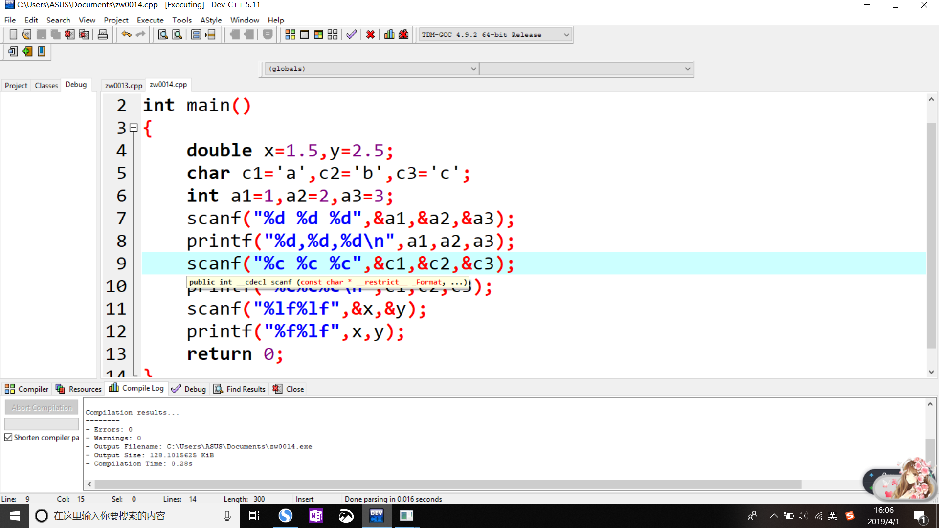 特别地,在定义了一个double型数据后,在scanf()函数中必须用%lf