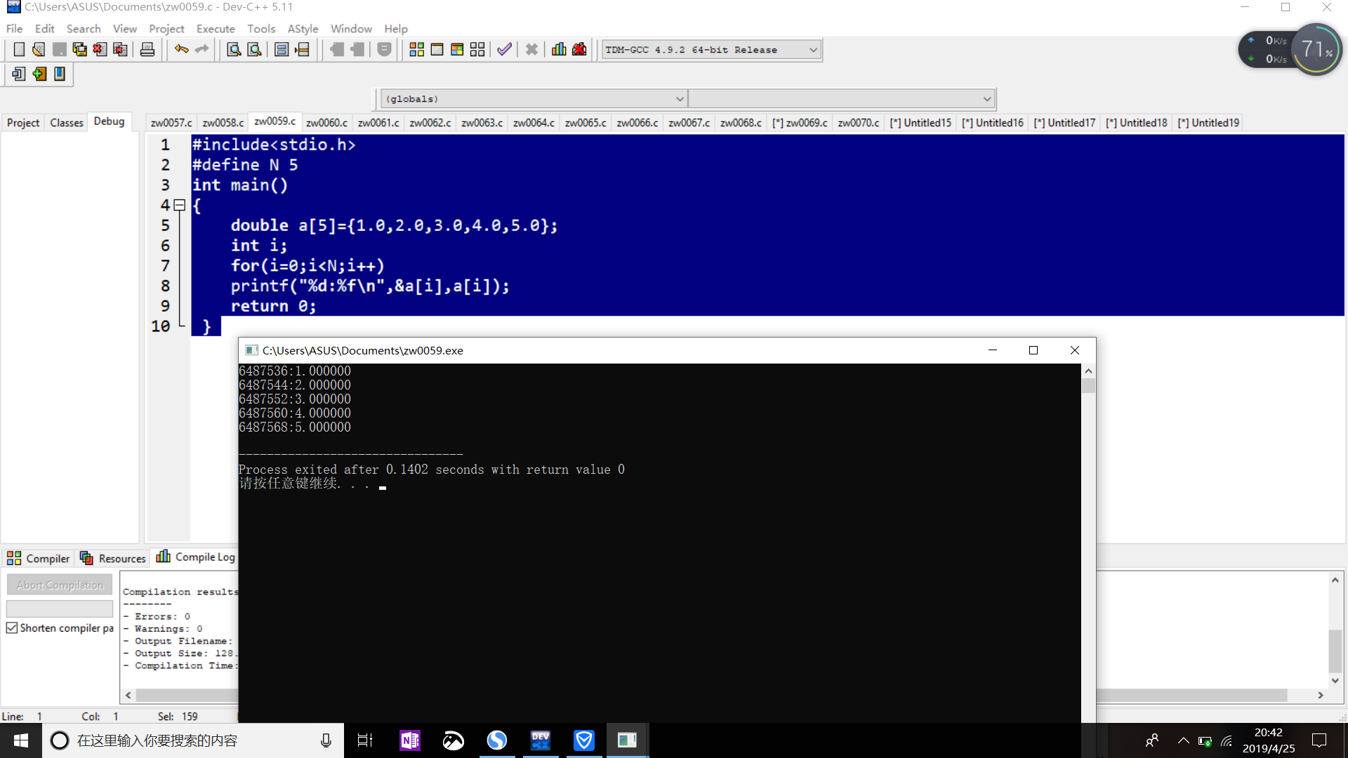 printf("%d:%f\n",&a[i],a[i]);