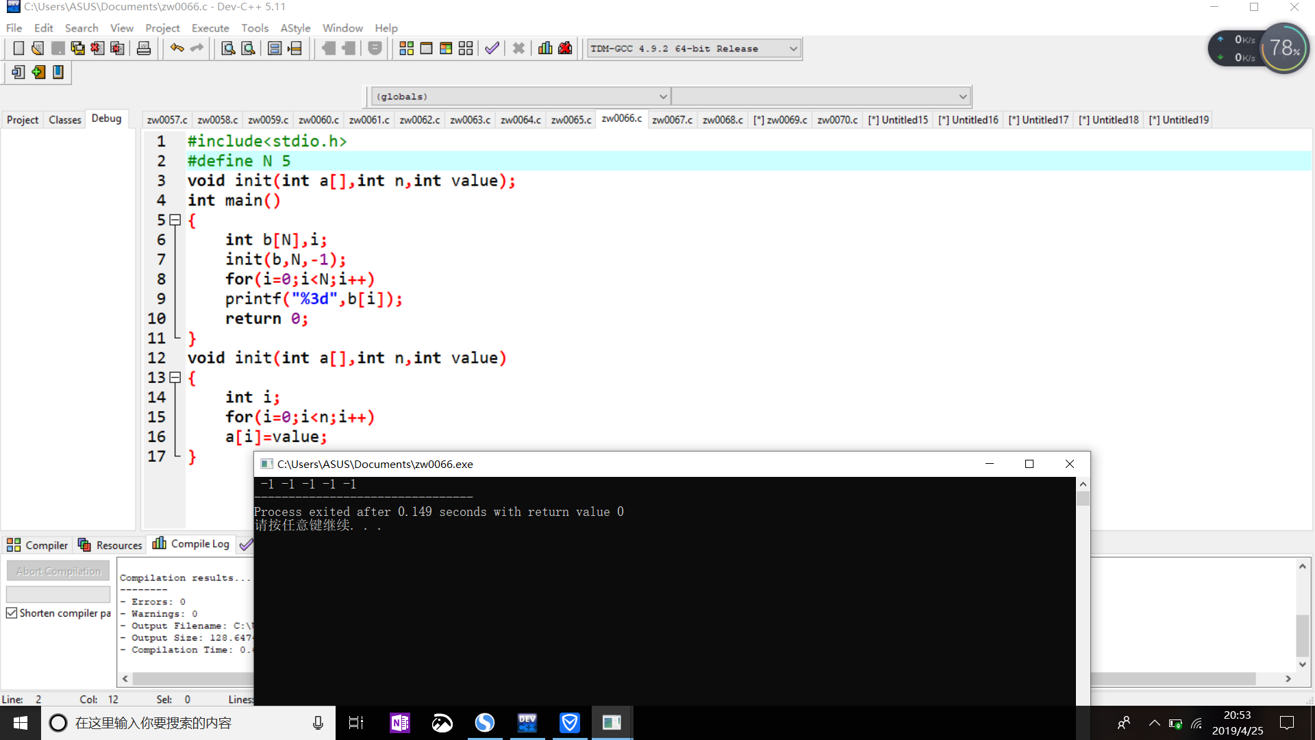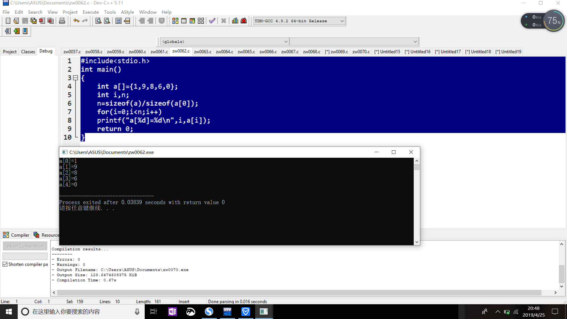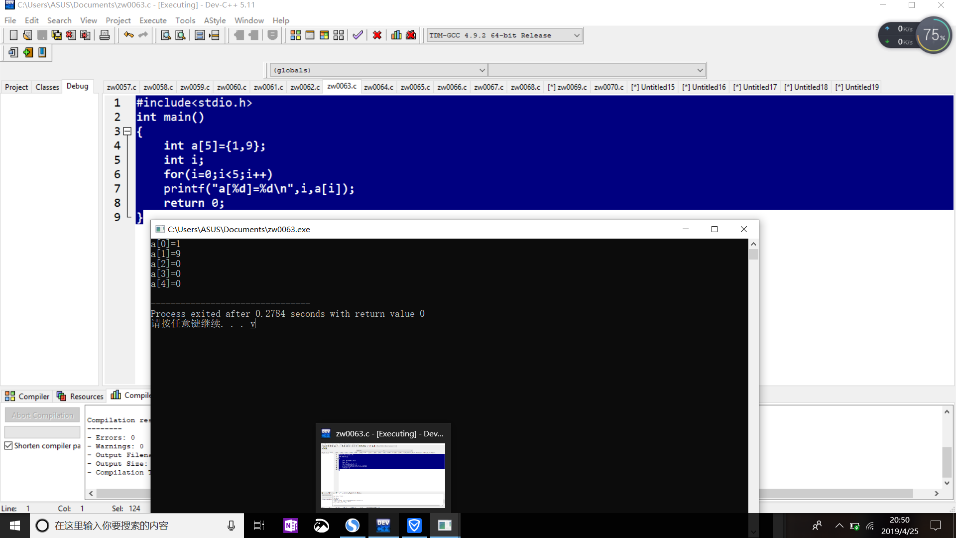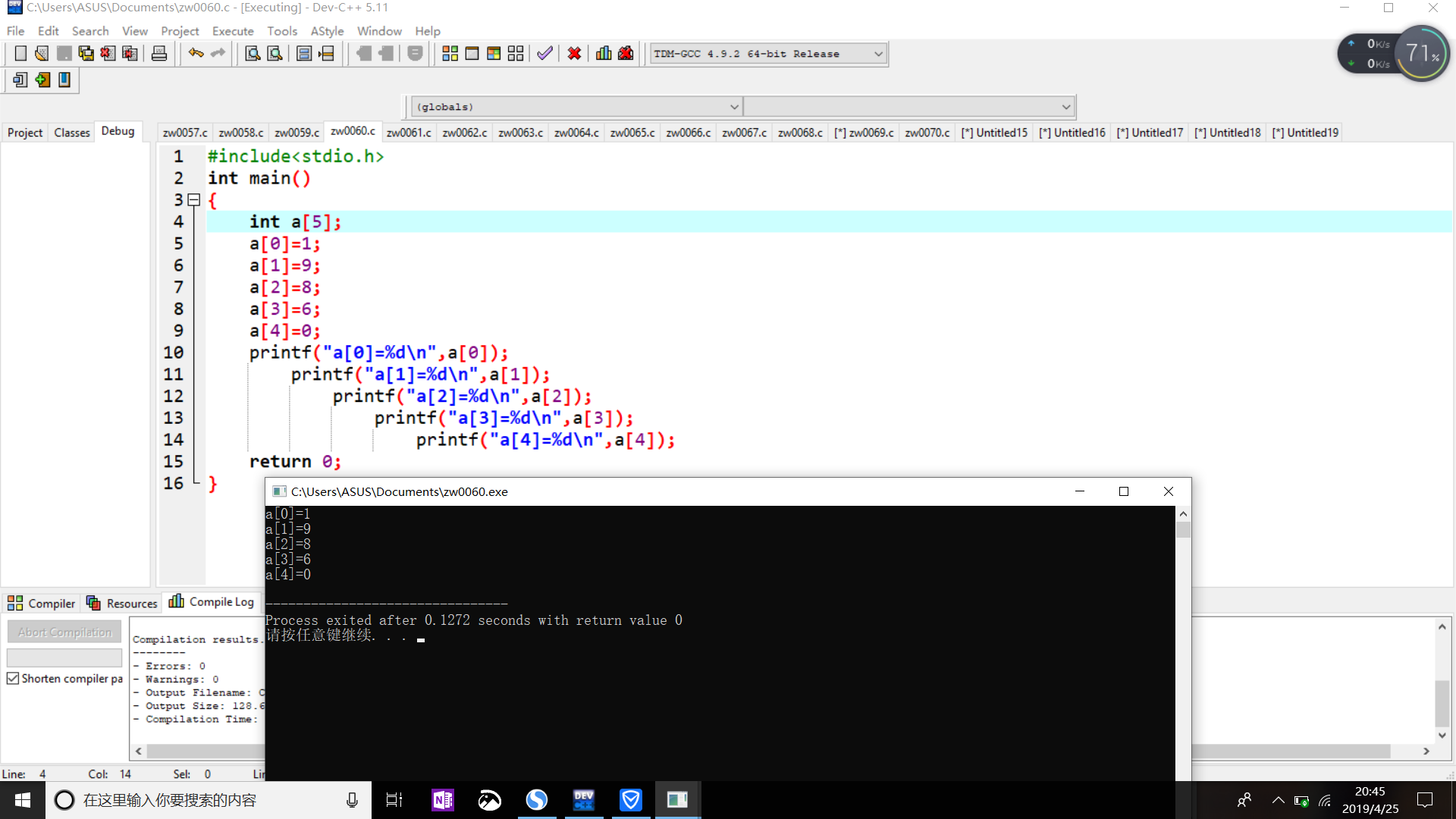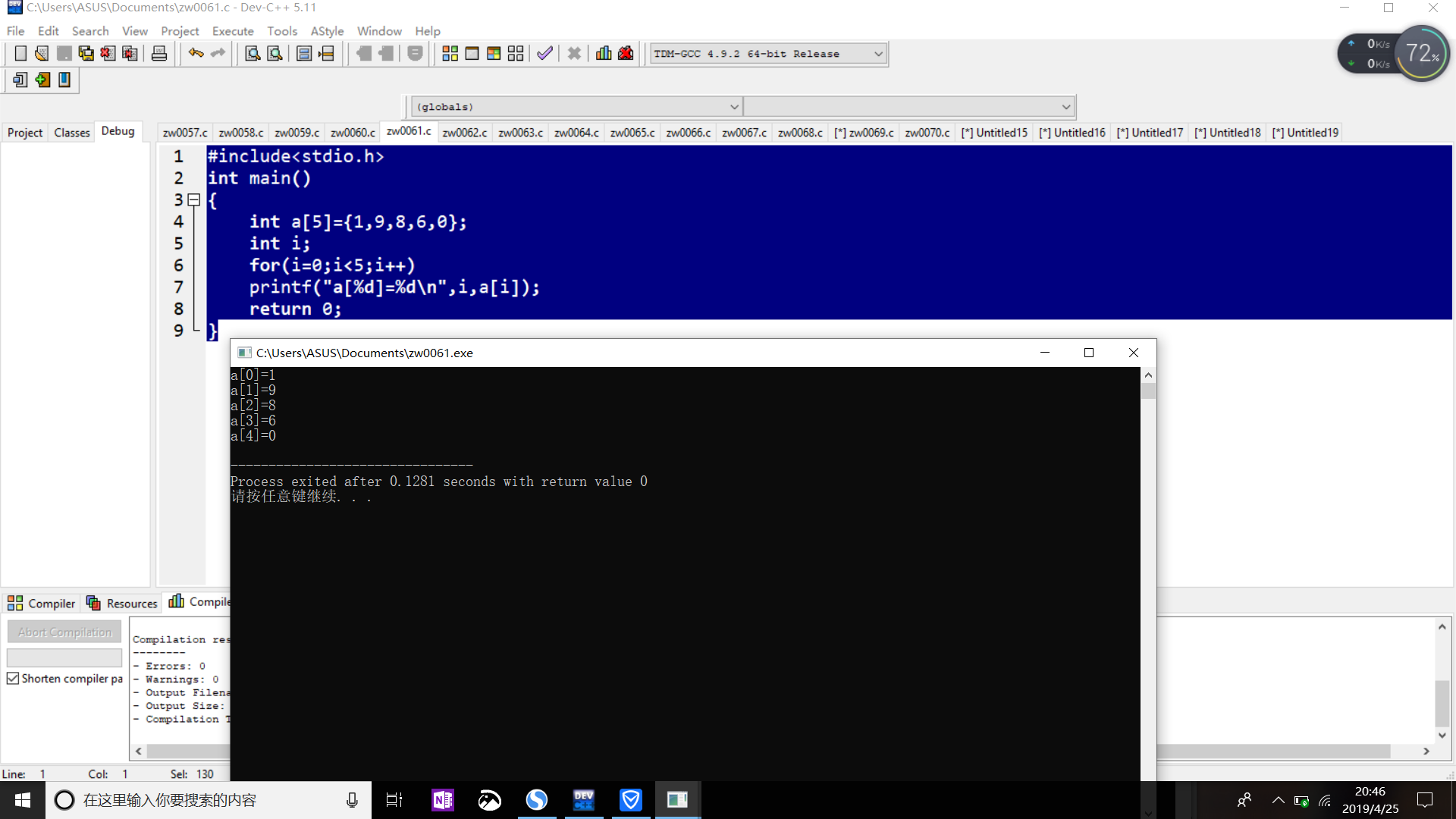 printf("a[0]=%d\n",a[0]);