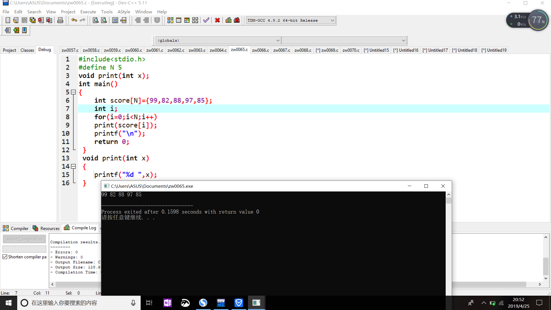 int score[N]={99,82,88,97,85};
