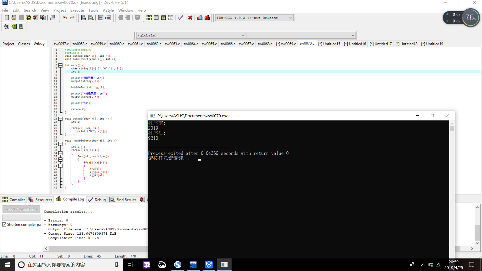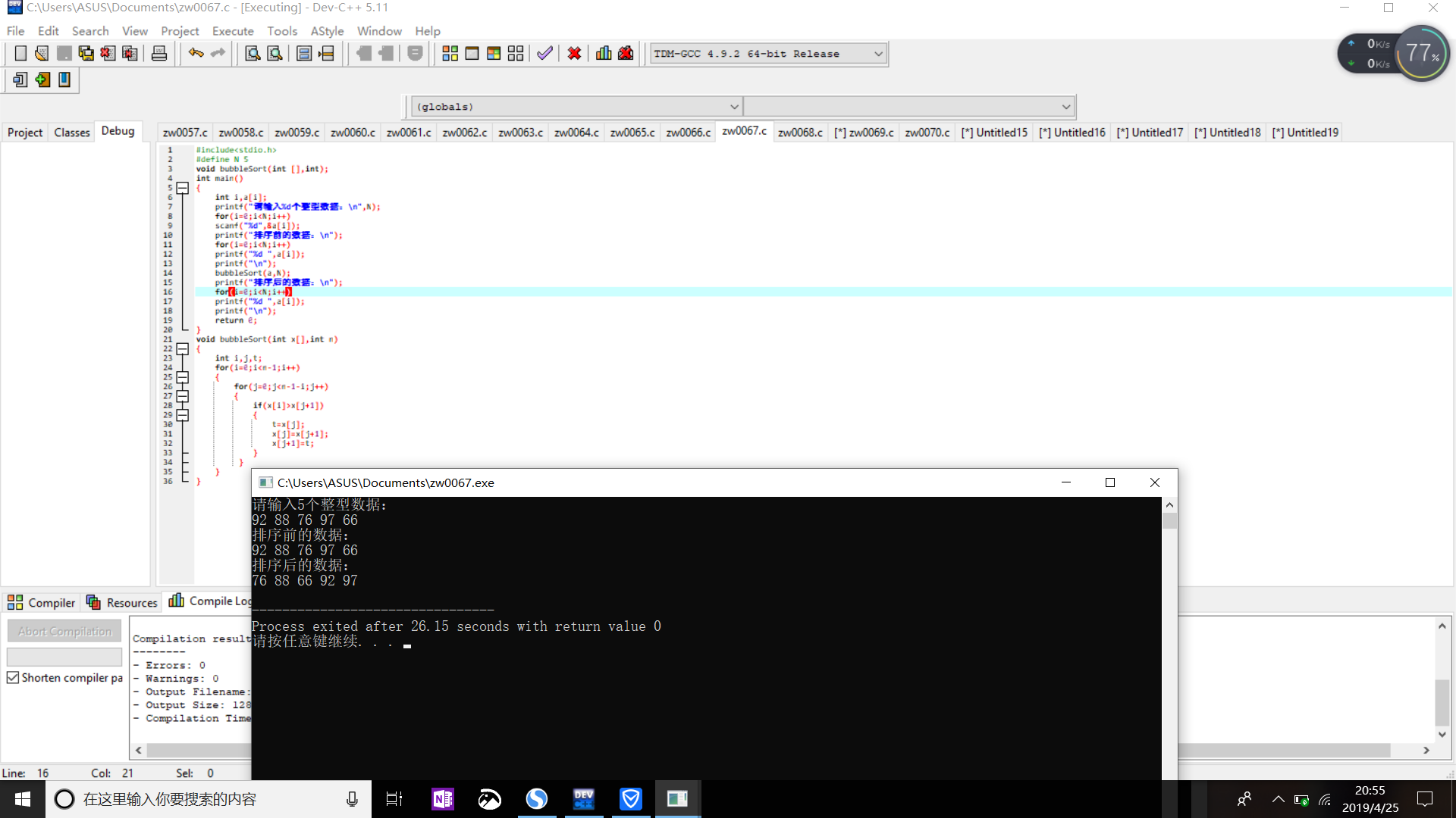 printf("排序后的数据:\n");