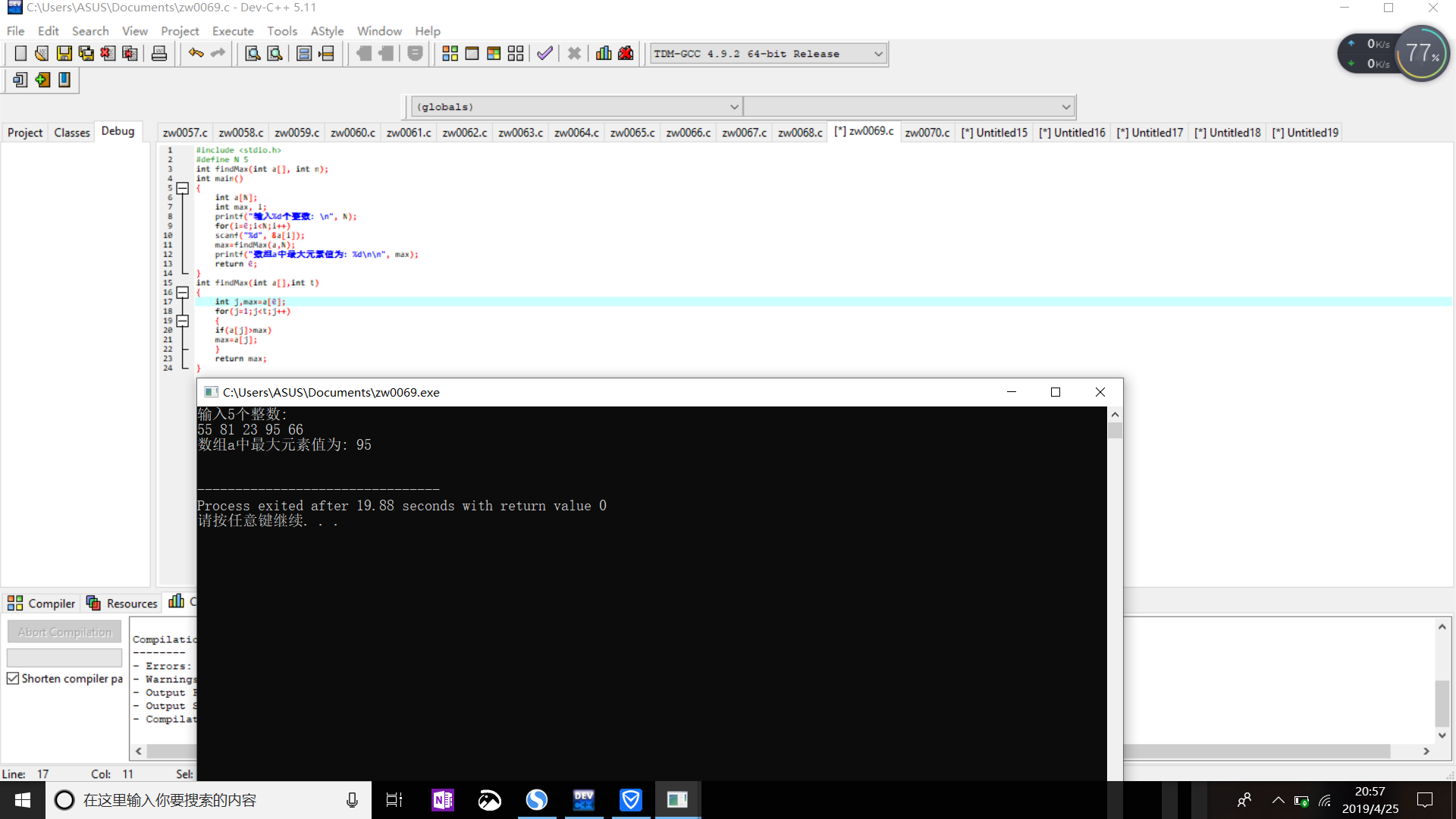 printf("数组a中最大元素值为: %d\n\n", max);
