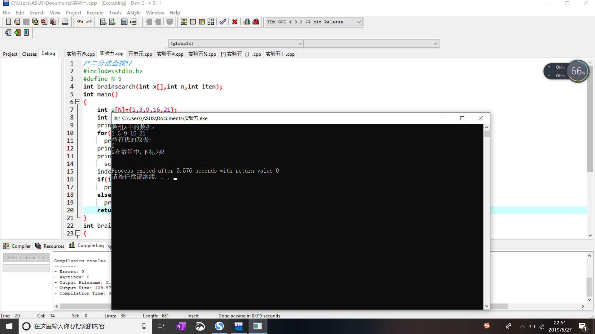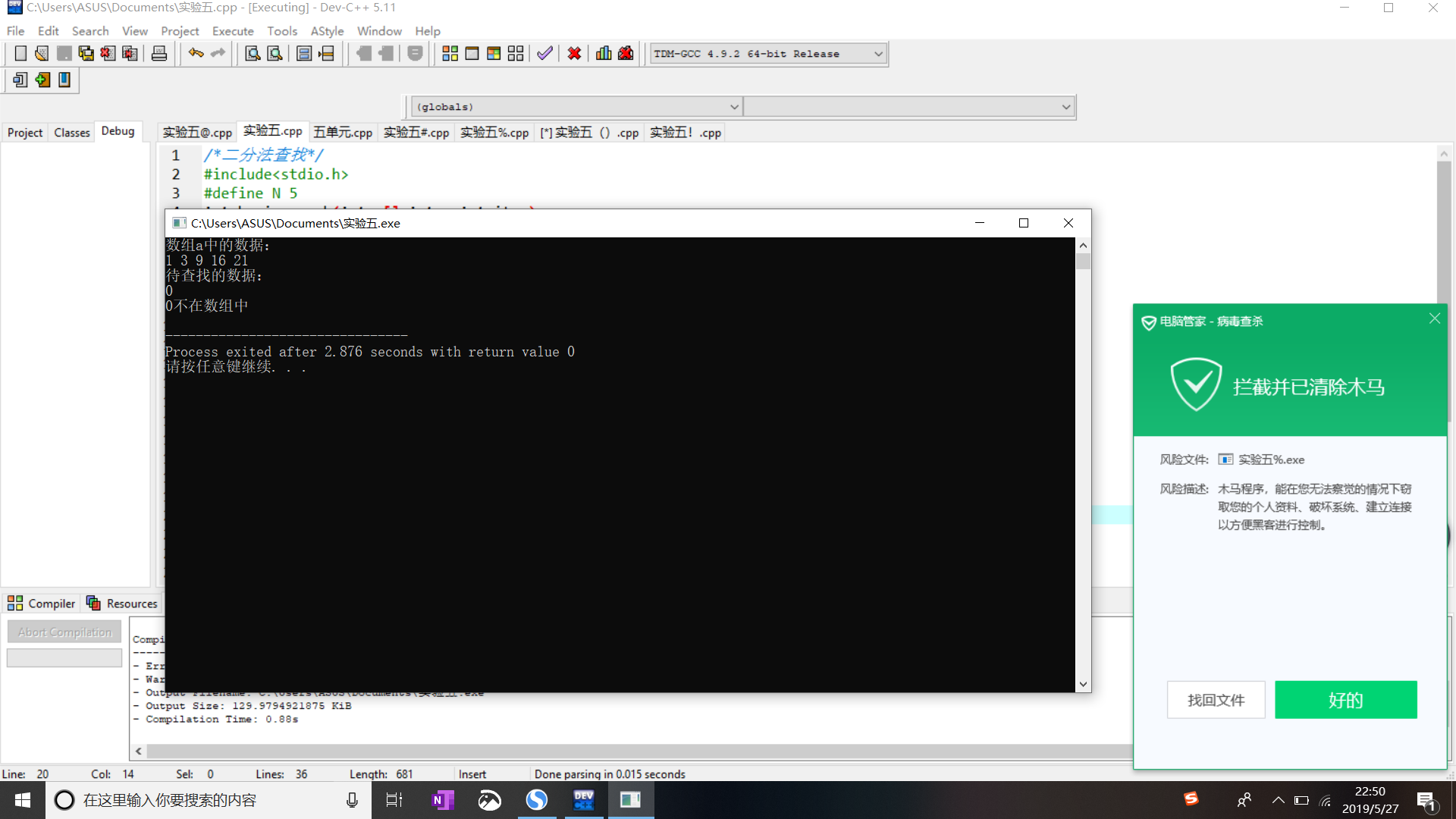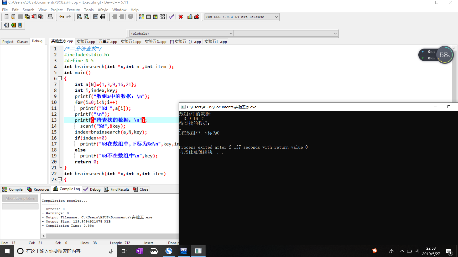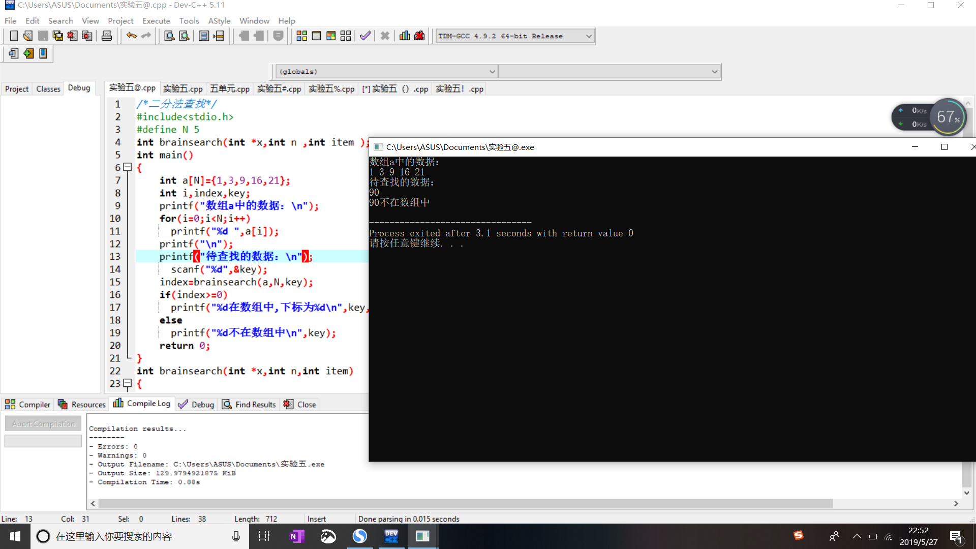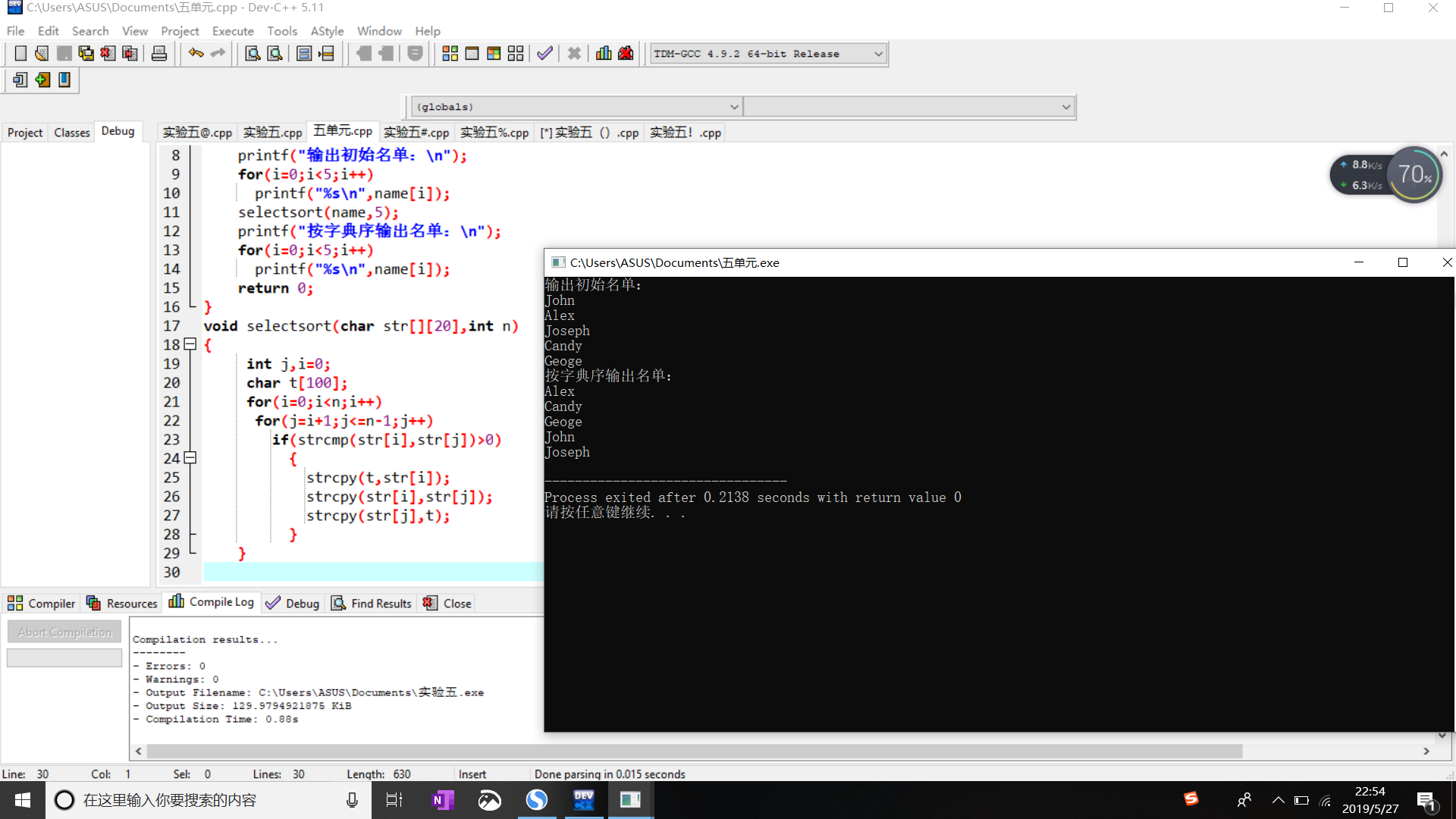 实验结论:选择法排序时,输入的元素必须按从大到小的顺序排列好;