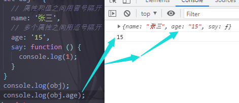 里面的属性或方法采用键值对的形式,键 == 属性名 : 值 == 属性值,键和值之间用冒号隔开。多个属性和方法之间用逗号隔开。方法是冒号后面跟着一个匿名函数。