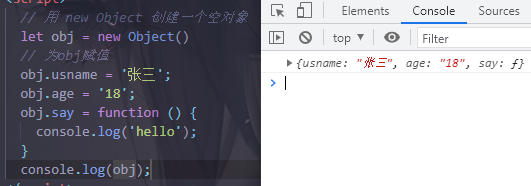 对象字面量:大括号 { },里面包含了表达这个具体事物(对象)的属性和方法。