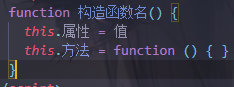 构造函数的语法:function 构造函数名() { this.属性 = 值; this.方法 = function () { } }