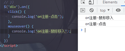 3、可以给动态创建的元素添加事件。click() 没有办法给动态创建的元素绑定事件,而 on 可以。