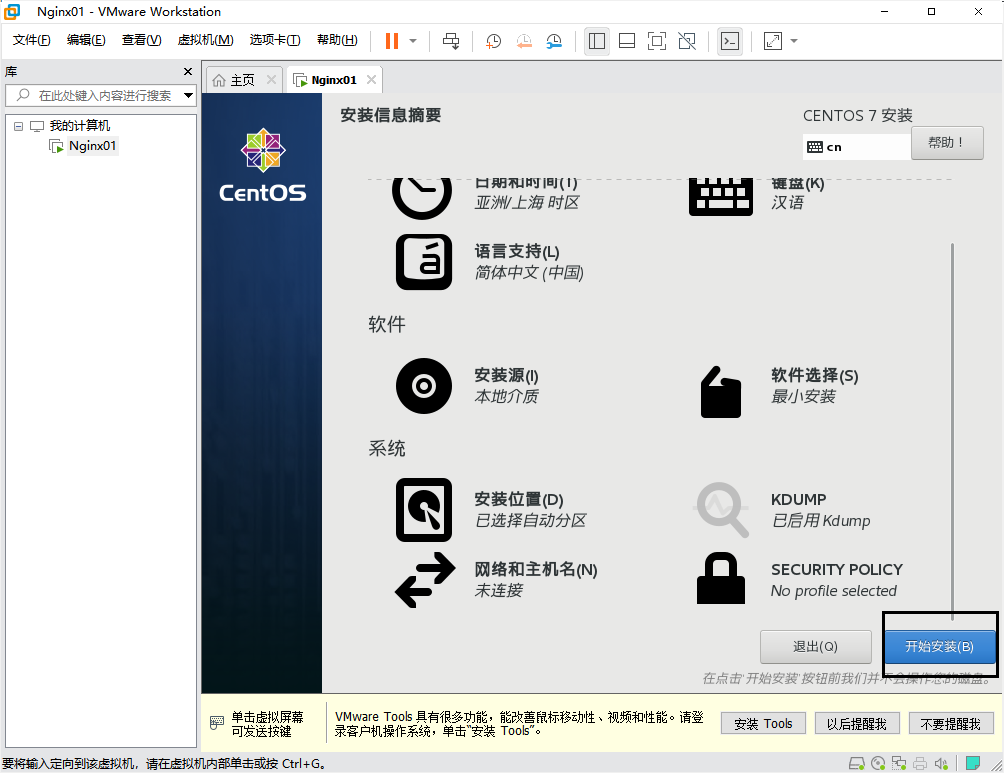 软件用的是 VMware Workstation Pro,操作系统用的是 CentOS7.4 镜像。