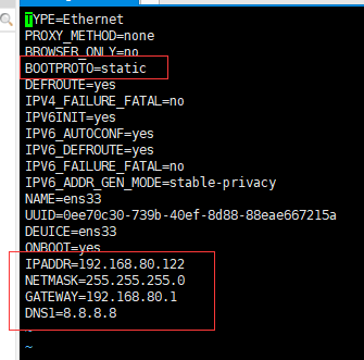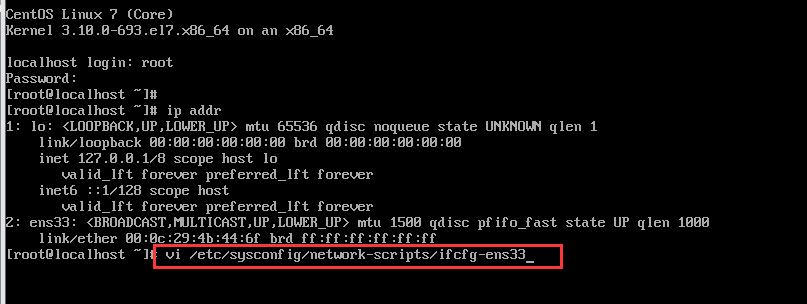 1、输入 vi /etc/sysconfig/network-scripts/ifcfg-ens33 进入配置文件,添加如下选项。