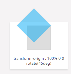 <p>transform-origin : 100% 0 0 <br/>rotate(45deg)</p>