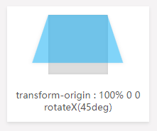 <p>transform-origin : 100% 0 0<br/>rotateX(45deg)</p>