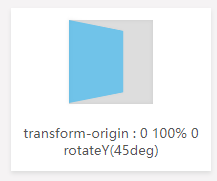 <p>transform-origin : 0 100% 0 <br/>rotateY(45deg)</p>