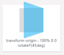 <p>transform-origin : 100% 0 0<br/>rotateY(45deg)</p>