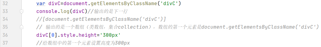 如果需要取到具体的DOM元素,需要加索引,如:document.getElementsByClassName(“box”)[0] =>获取class为box的所有元素中的第一个DOM元素。