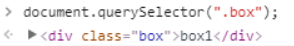 querySelector()方法括号中的值是元素的选择器,#box用的是id选择器。