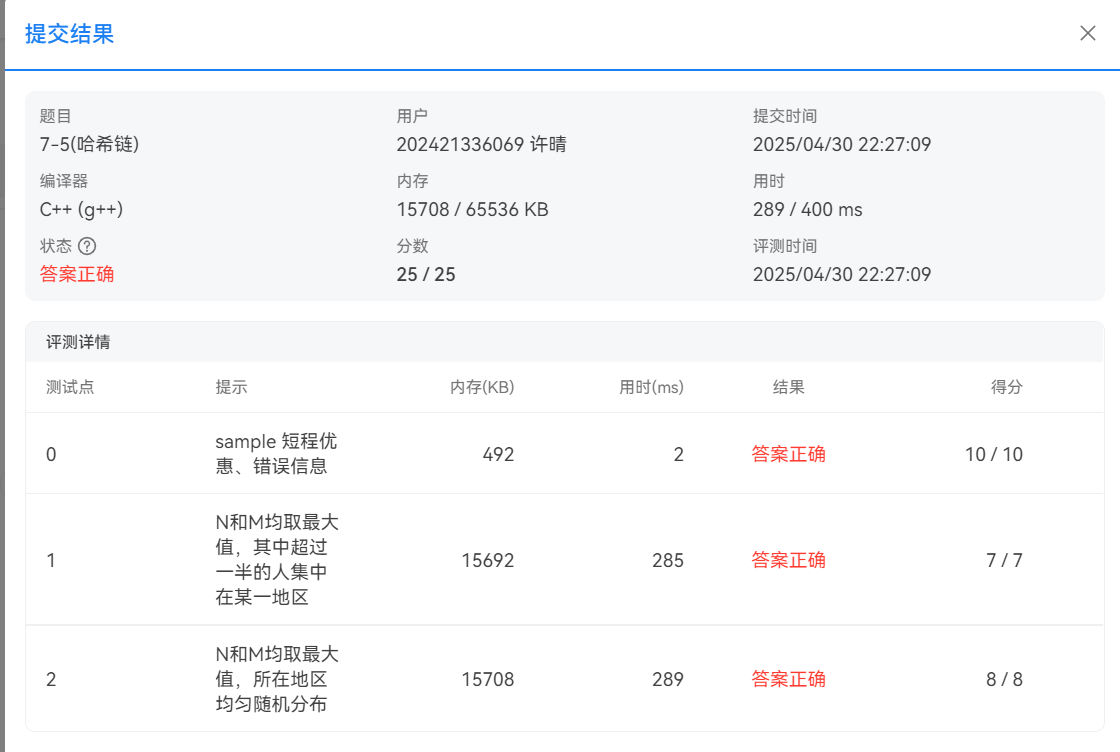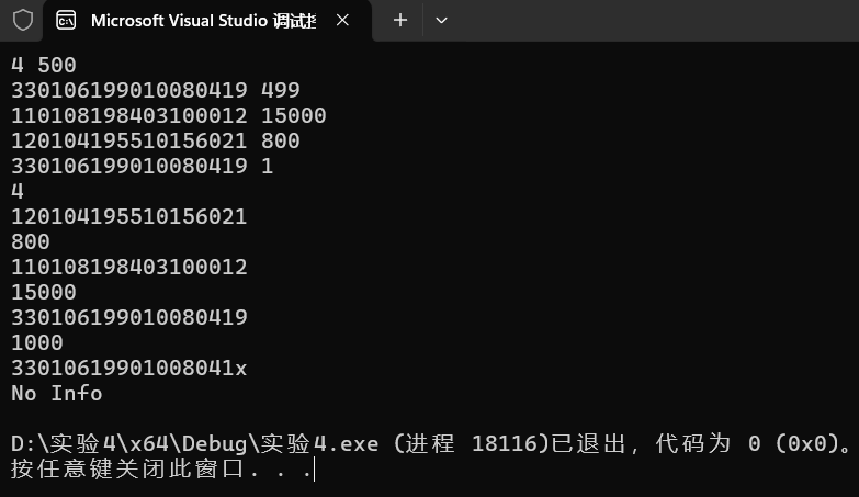 - 在哈希表中查找该身份证号码,如果找到则输出对应的里程积分,否则输出 No Info 。