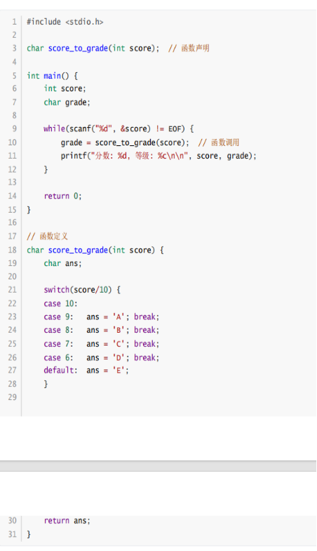 将分数匹配对应的等级,形参类型为整数,返回值类型为字符