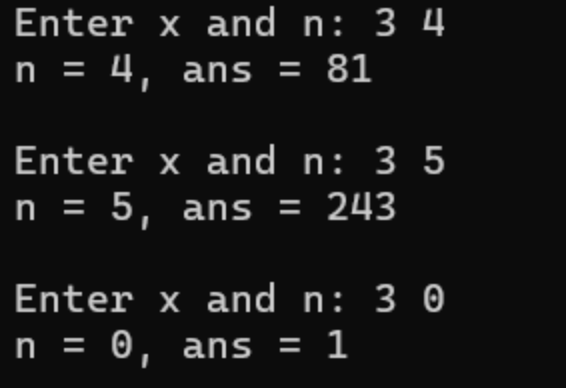 问题2:函数 power 是递归函数吗?如果是,找出递归模式。写出这个递归模式对应的数学公式模型。