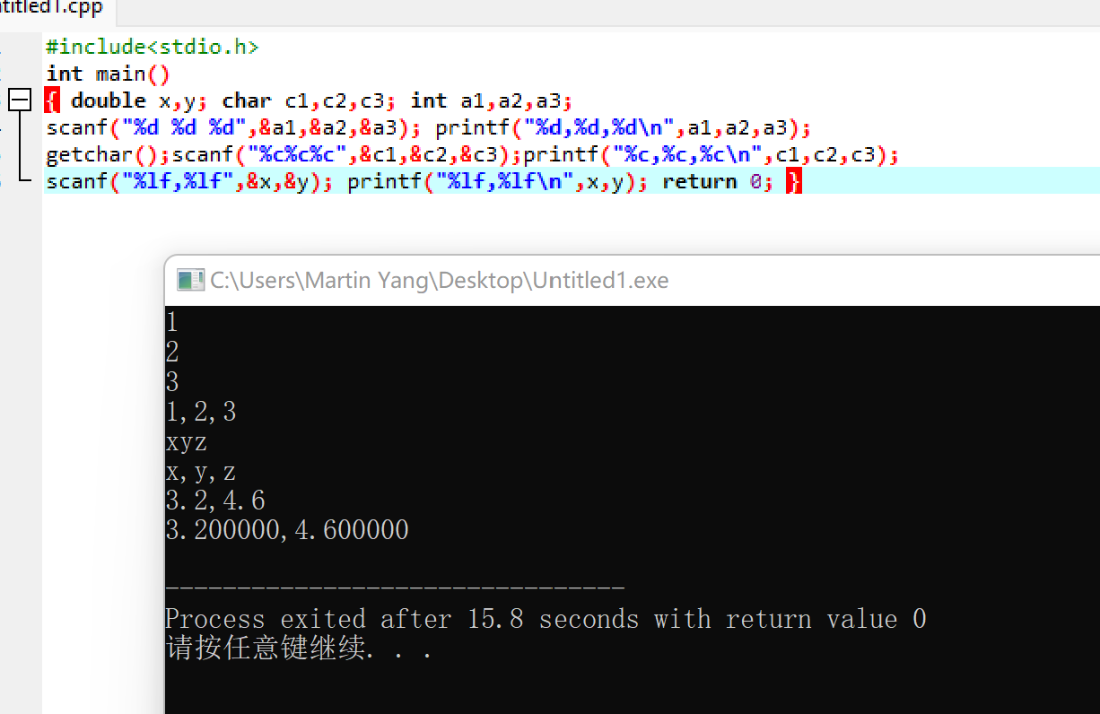 scanf("%lf,%lf",&x,&y); printf("%lf,%lf\n",x,y); return 0; }