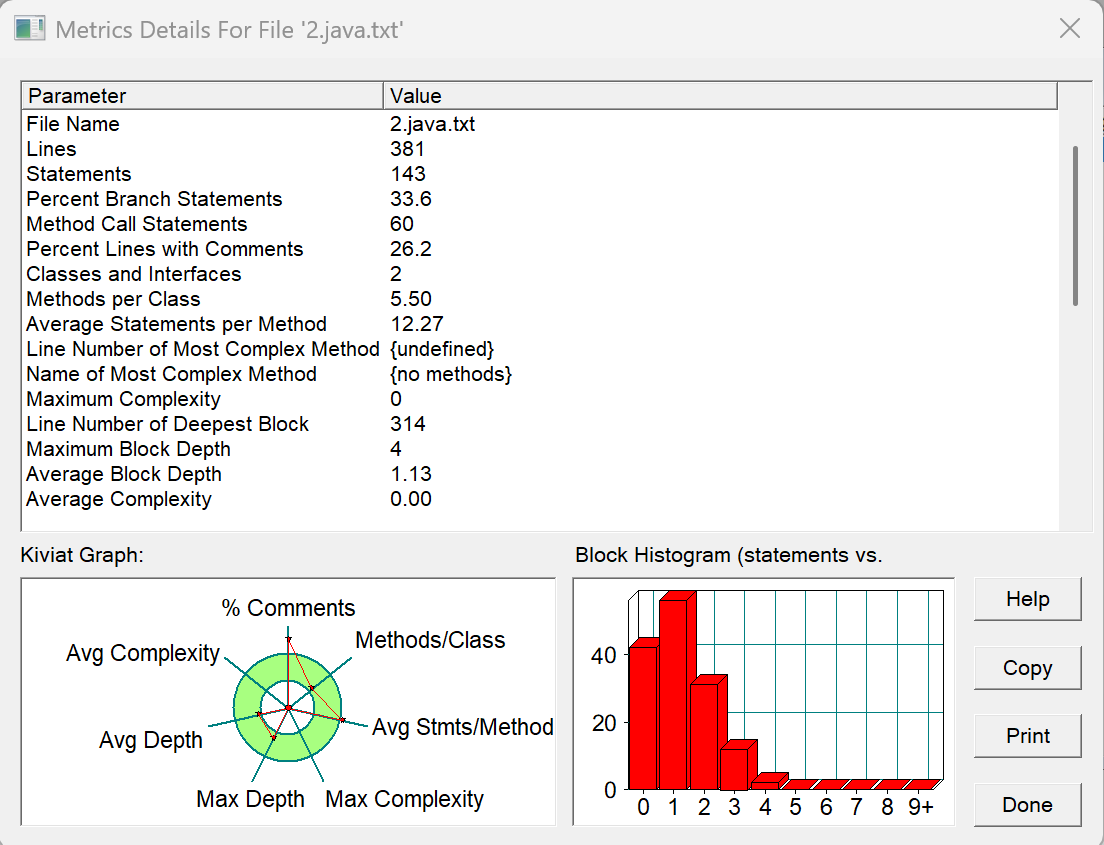 行数(381 行)和语句数(143 句):代码规模略有增加,可能是因为新增了逻辑或注释,但整体仍属于中等复杂度。