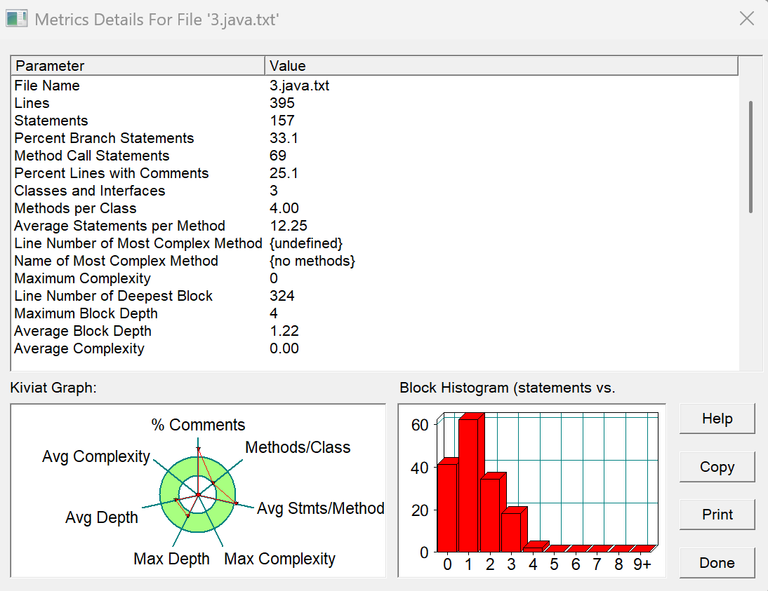 分支语句占比:“Percent Branch Statements” 达到 40.2%,比例相对较高。这可能表明代码里有较多的条件判断,可能会使代码的可读性和可维护性降低。 - 注释问题