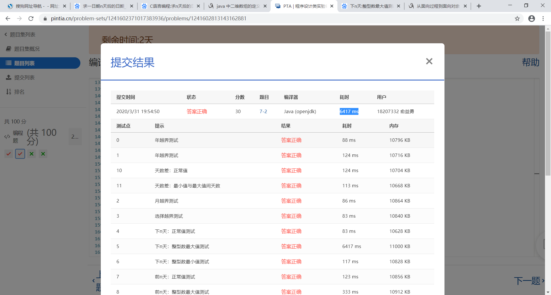 自java课程开启以来,已经在PTA上完成了3次练习,还有一些课堂上的小练习。除了第一次练习时有些生疏,没能拿到满分,其余2次的作业我都是完成了每一个测试点。即使之前我已经学习了一定的java,但是由于缺乏练习和长时间的遗忘,和没课本在网上教学。写起代码还是有一定的磕磕绊绊,不能非常快速且高效地完成高质量的代码。