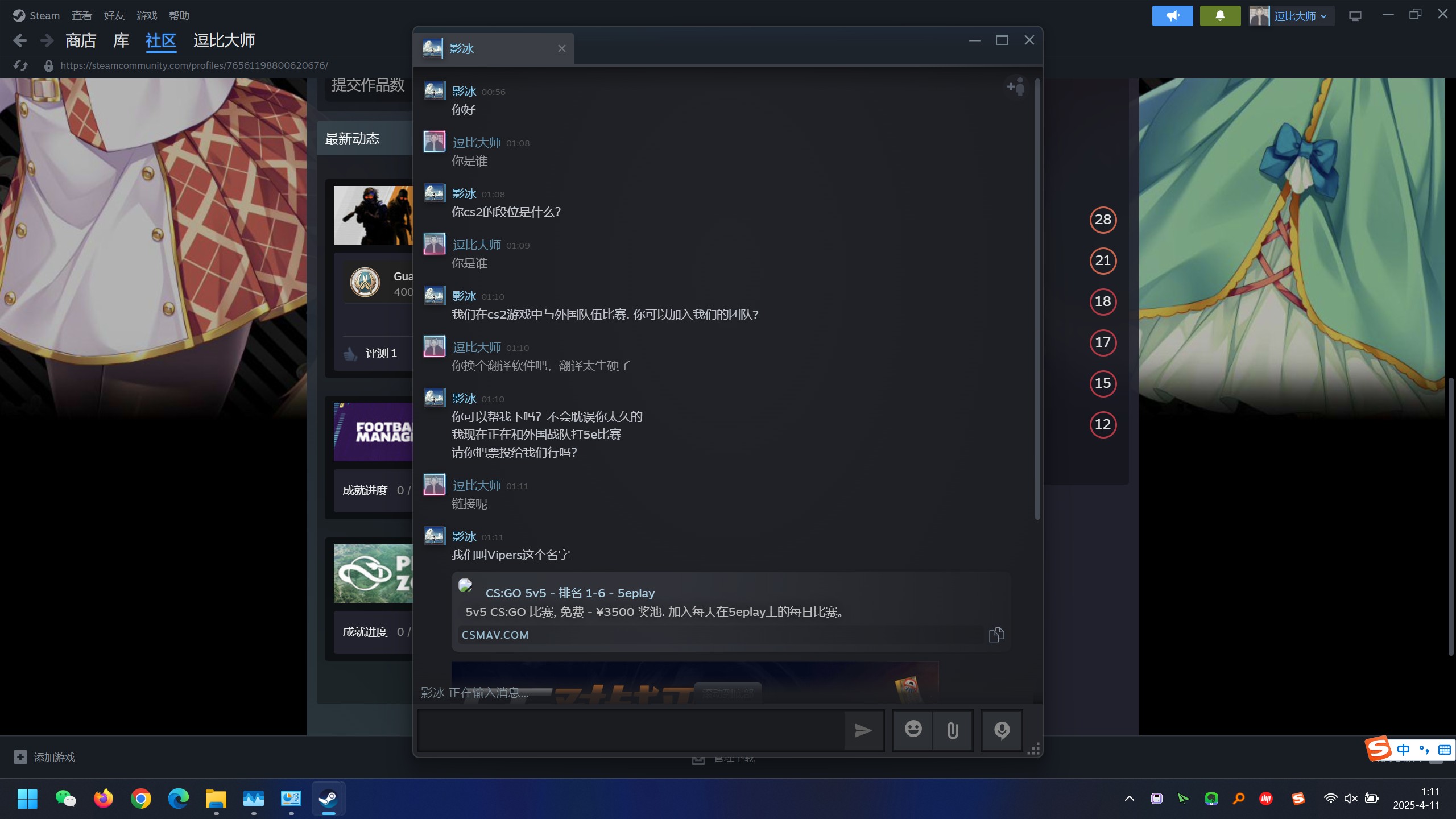 周末有个Steam名为“影冰”的用户,通过好友关系添加我为好友。