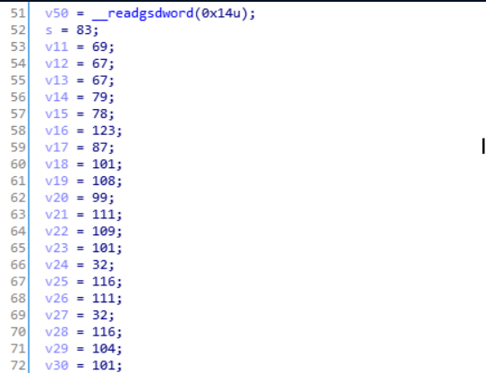 直接将为代码中这些数转换为字符(char)便可以得到flag