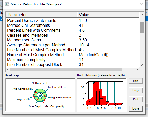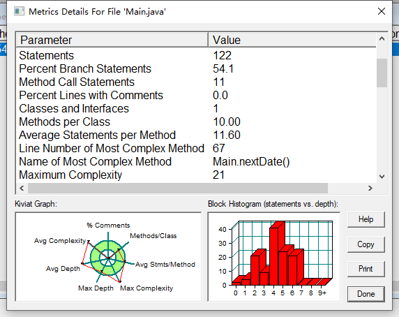 题目本身并不难,但是需要多次循环输入数据并判断符不符合规则,所以我多次运用了for循环语句和switch语句导致圈复杂度高于10。难度上比较简单但是我的圈复杂度依旧是比较高,两次的for循环让我难以达到一个较低的圈复杂度,for循环的叠加 圈复杂度是成倍数增长的,所以在以后的代码中尽量是不能出现for循环的叠加。