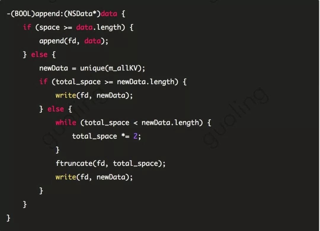 通过 mmap 内存映射文件,提供一段可供随时写入的内存块,App 只管往里面写数据,由 iOS 负责将内存回写到文件,不必担心 crash 导致数据丢失。