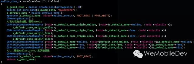 通过malloc_zone_create创建一个新的zone,并命名为guard zone