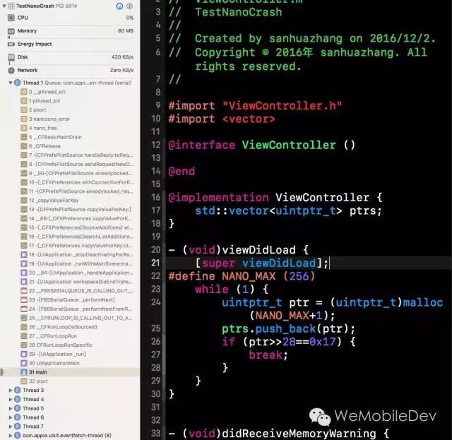 [微信iOS]& 聊聊苹果的Bug - iOS 10 nano_free Crash
