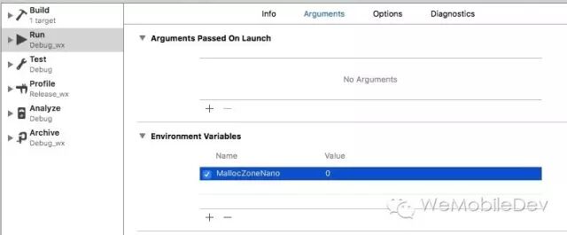 setenv方法,可以设置环境变量,修改MallocZoneNano=0。然而并没有效果,因为dylib的初始化在微信之前,此时微信还未启动。 -