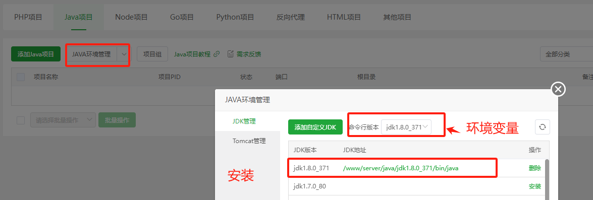 可以通过宝塔直接安装并配置环境变量