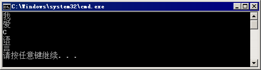 在例3-1的程序中,使用了5个printf()语句,从上往下依次输出“我、爱、C、语、言”。从运行结果可以看出,程序是按照语句的先后顺序执行的。因此,可以说明该程序是一个顺序结构的程序。