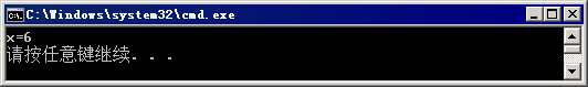 例3-2中,定义了一个变量x,其初始值为5。在if语句的判断条件中判断x的值是否小于10,很明显条件成立,因此{}中的语句会被执行,变量x的值将进行自增。从图3-5的运行结果可以看出,x的值已由原来的5变成了6。