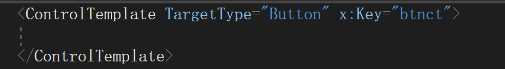 控件模板是button的template属性,我们在资源中定义一个controltemplate,指定target为button,并写一个名字叫btnct。需要注意控件模板必须要指定key才行,另外为什么是controltemplate?因为template属性的类型是controlyemplate