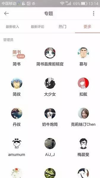 很多软件都喜欢运用九宫格布局,简书的专题管理员这里也使用了这种布局,井然有序且间隔合理,视觉效果挺舒服的。