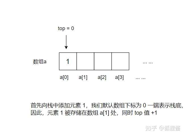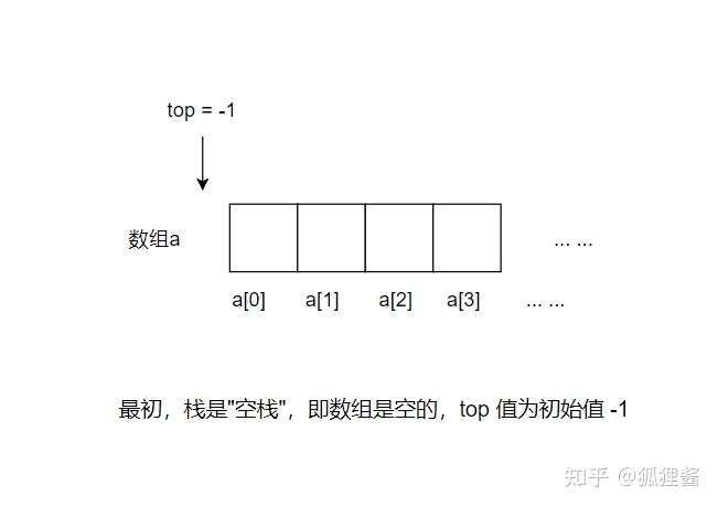 在顺序表中设定一个实时指向栈顶元素的变量(一般命名为 top),top 初始值为 -1,表示栈中没有存储任何数据元素,及栈是"空栈"。一旦有数据元素进栈,则 top 就做 +1 操作;反之,如果数据元素出栈,top 就做 -1 操作。