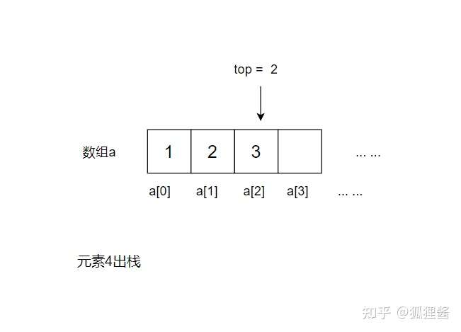 比如,将图 5 中的元素 2 出栈,则需要先将元素 4 和元素 3 依次出栈。需要注意的是,当有数据出栈时,要将 top 做 -1 操作。因此,元素 4 和元素 3 出栈的过程如下流程图