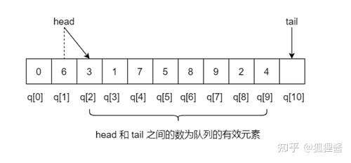 保持head和tail之间的数为目前队列中“有效”的数。这样做虽然浪费了一个空间, 却节省了大量的时间, 这是非常划算的。新增加一个数也很简单, 把需要增加的数放到队尾即q[tail]之后再tail++就OK啦。