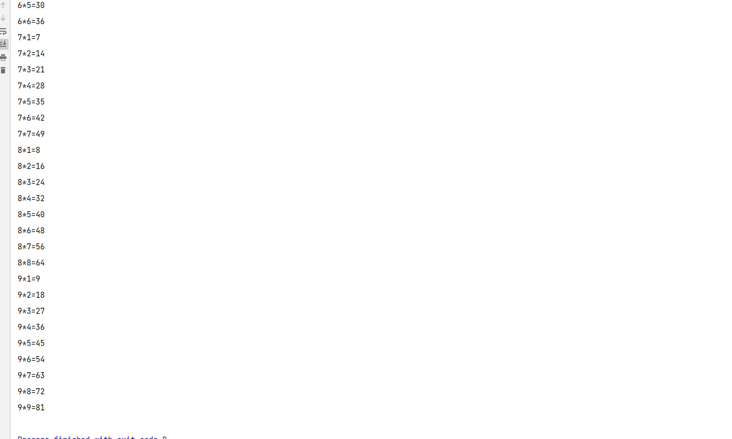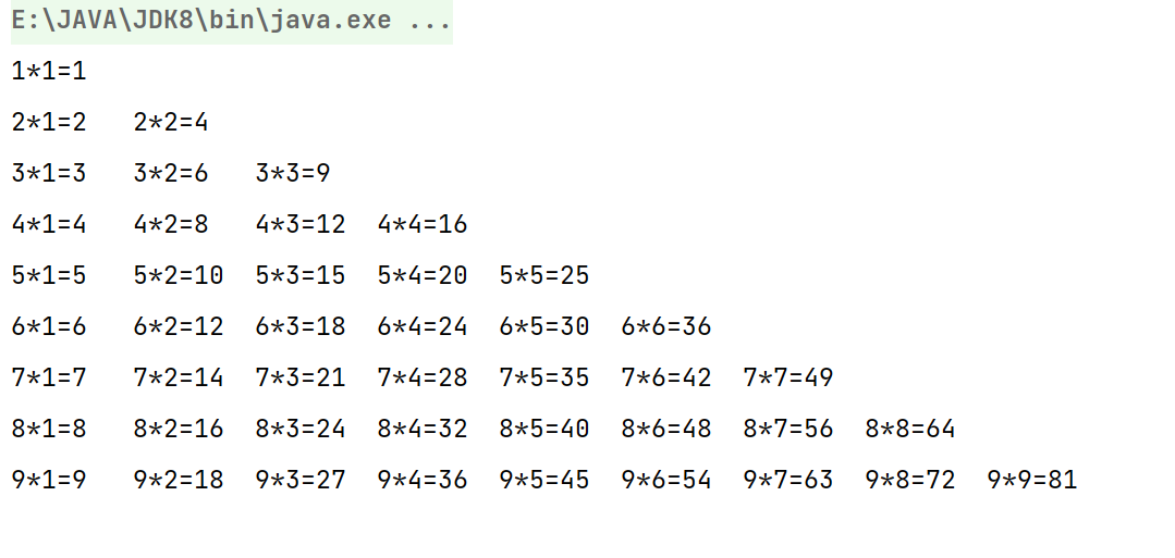 至此,九九乘法表的所有计算已经全部输出,只剩下最后的修饰了。