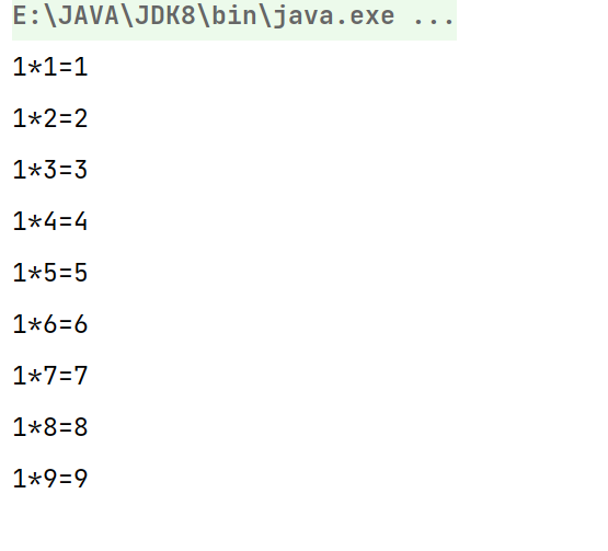 此处也可以理解为:先将九九乘法表的第一列输出出来。